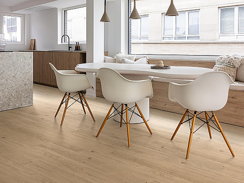 Parador Classic 3060 v odstínu Natur jasan je ukázkou světlé podlahy, která působí vzdušně, elegantně a nadčasově. Jemná kresba dřeva dodává interiéru přirozený charakter, aniž by na sebe strhávala pozornost. Skvěle se hodí do moderních bytů, kde je cílem světlo, jednoduchost a vizuální klid.